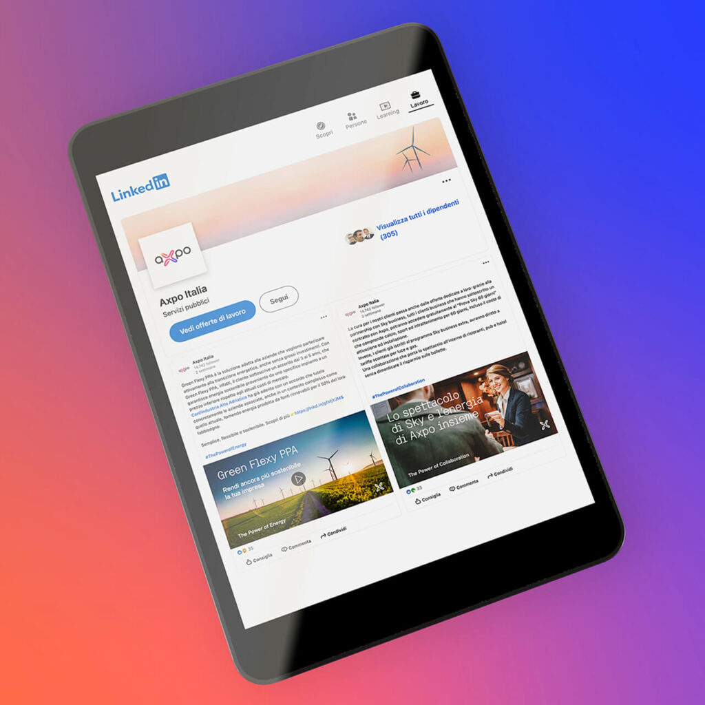 Per Axpo abbiamo trasformato il profilo LinkedIn in una piattaforma di narrazione autentica, capace di raccontare l’impegno per la sostenibilità, i successi concreti e – soprattutto – le persone che ogni giorno costruiscono il futuro dell’azienda. L’obiettivo: superare la comunicazione istituzionale tradizionale e rafforzare la reputazione del brand nel network professionale.
