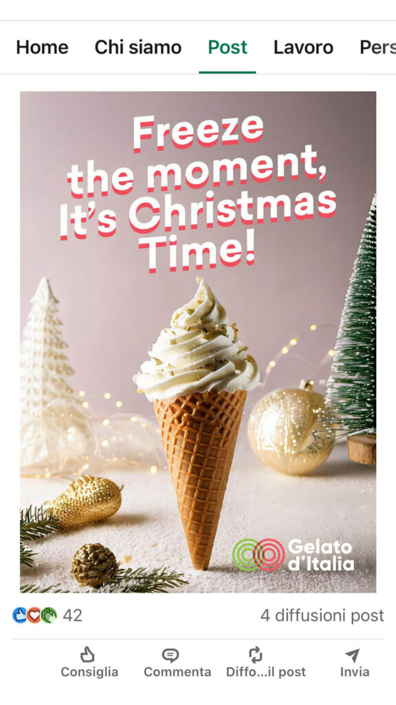 Gelato d’Italia ci ha chiesto di rafforzare la propria presenza online e raccontarsi come un’eccellenza italiana innovativa e internazionale. La nostra idea è stata quella di unire contenuti social, un nuovo sito e un video istituzionale per valorizzare l’identità del brand e avvicinarlo al pubblico B2B.