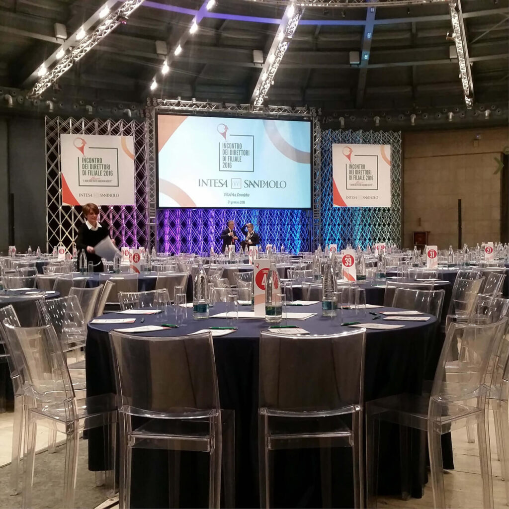 Dal 2016 accompagniamo Intesa Sanpaolo nell’organizzazione dei roadshow della divisione Banca dei Territori, creando ogni anno un format capace di avvicinare top management e direttori di filiale. La nostra idea è stata quella di trasformare un ciclo di incontri in un evento itinerante di successo, con una nuova identità visiva a ogni edizione.