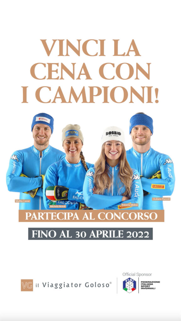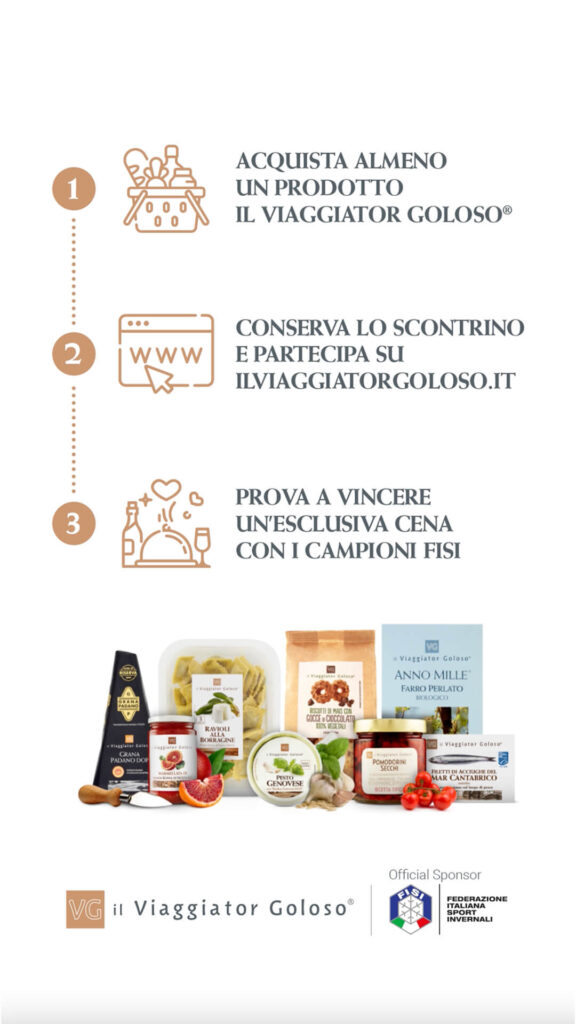 Per il Viaggiator Goloso® abbiamo creato il concorso “Vinci la cena con i campioni”, unendo il mondo della gastronomia a quello dello sport. L’obiettivo era massimizzare la sponsorship con la FISI, trasformandola in un’esperienza esclusiva e memorabile per i clienti.